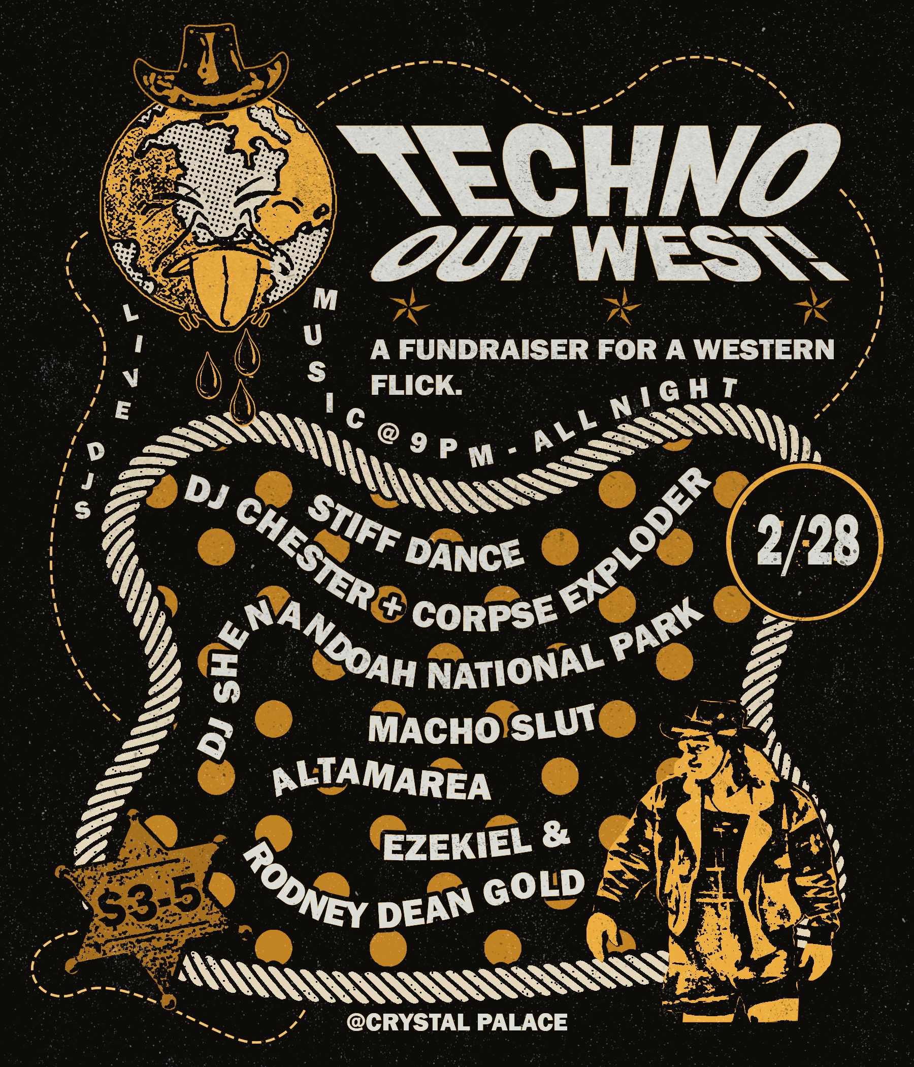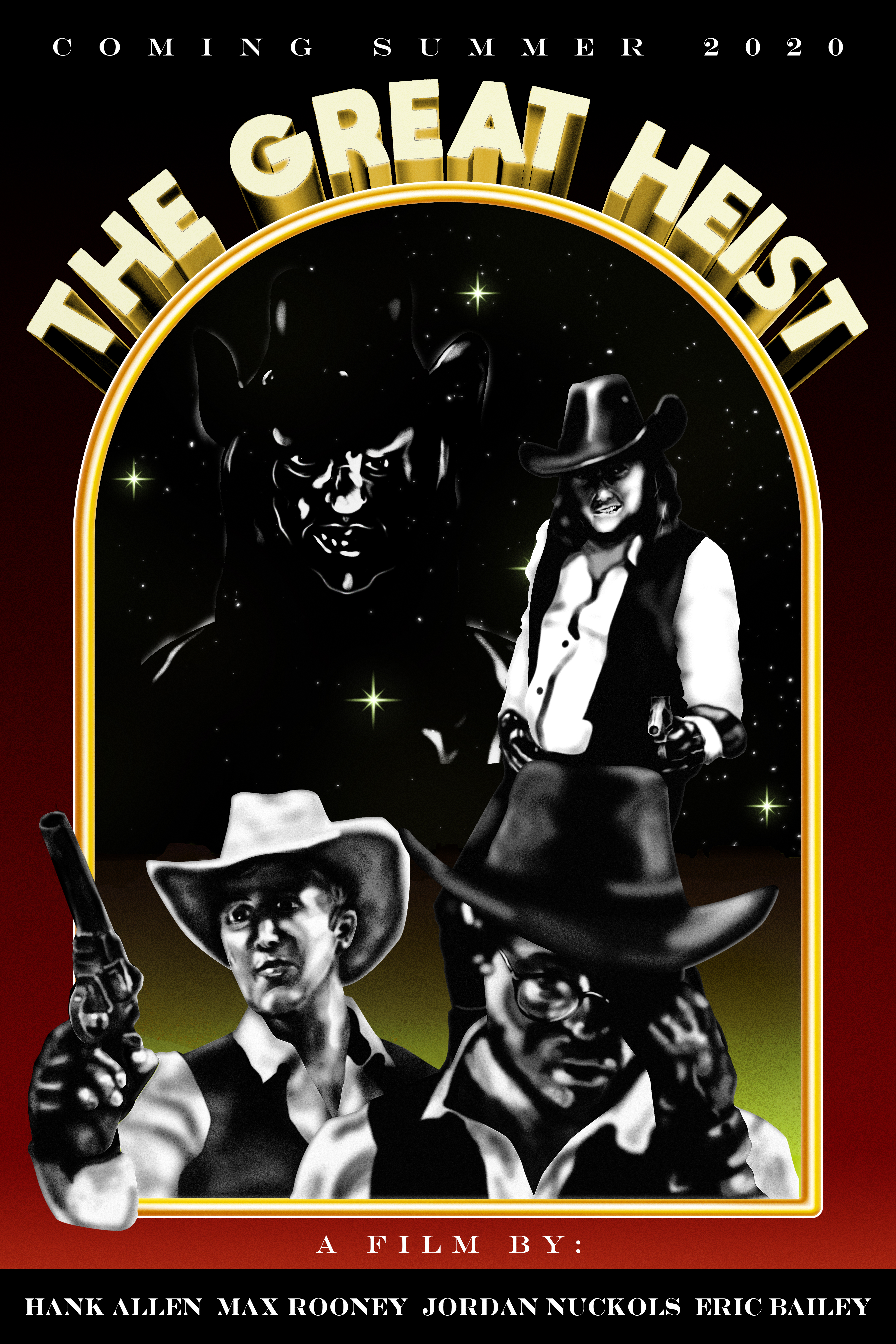 poster design for The Great Heist, airbrush cowboys by Max Rooney